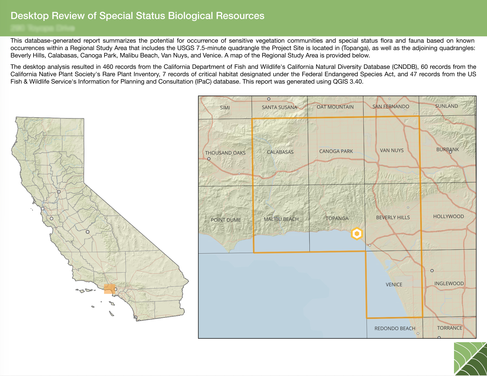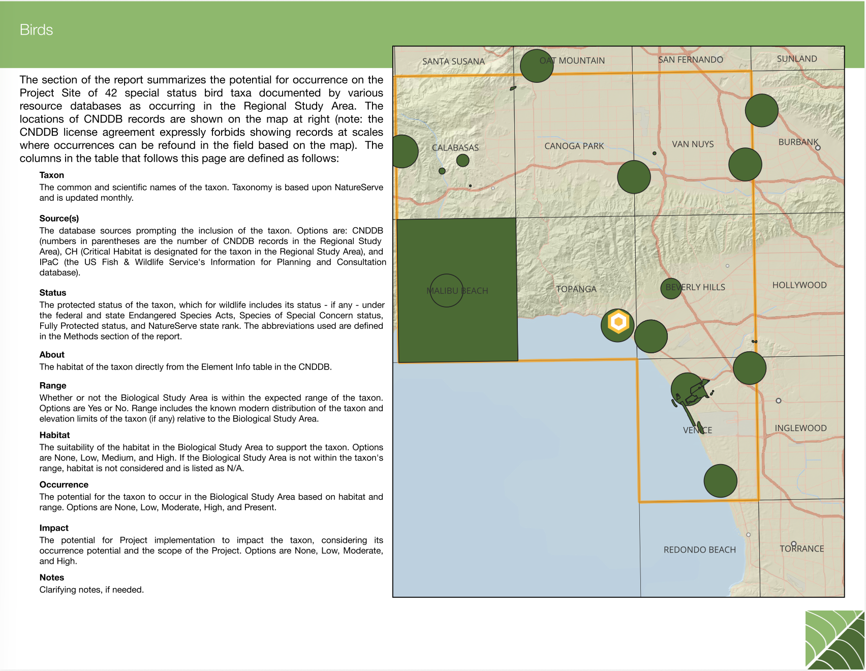 England|Ecology has completed hundreds of biological reports within the City of Los Angeles since the current processes were developed by Planning in 2023. These processes include the following biological document types, each with their own specific format: